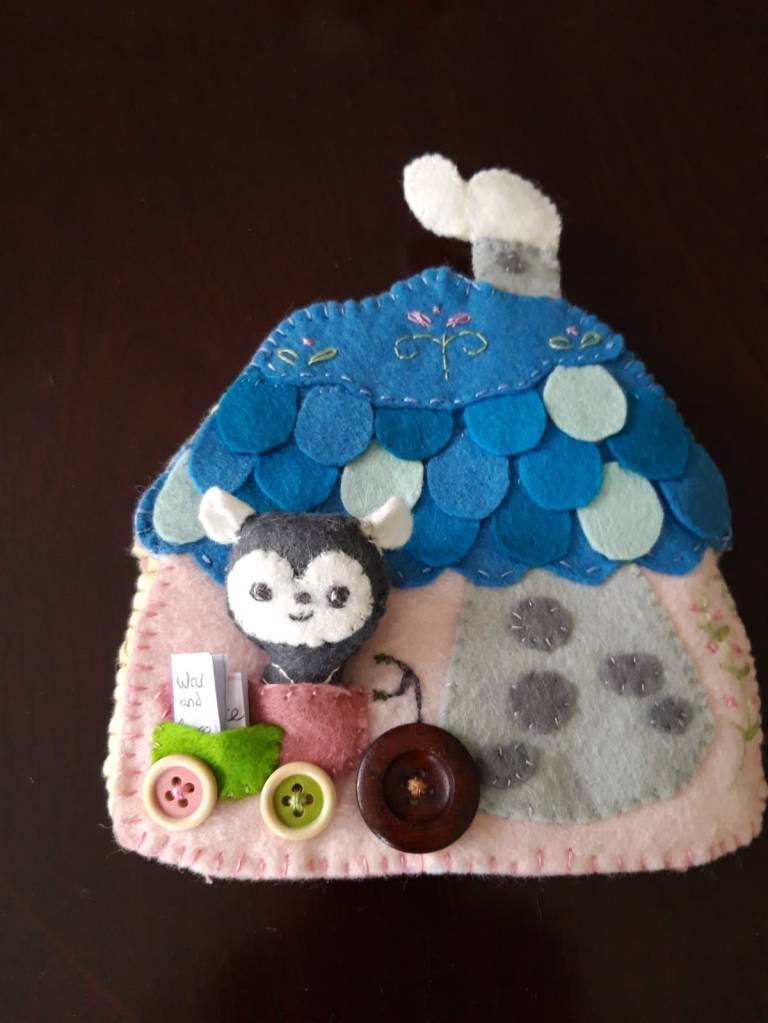 My first fab felt project was a quiet activity book for toddlers and was made for granddaughter no.1. I’d never heard of felt quiet books. The book took 3 weeks of daily felt fumbling, alongside watching YouTube tutorials on how to do the stitches. The end result is not perfect (particularly the mouse which is only 2″ high and thus almost impossible to stuff adequately, let alone trying to stitch cuteness onto its miniscule face) but was a valuable exercise in learning from my mistakes. The mouse goes in various pockets in the book which pleased me no end I can tell you. He runs a book shop and I stitched on (tightly) various animal buttons from Etsy as his friends. Did you know they make buttons that look like anything and everything? I didn’t and it, yet again, pleased me no end. I’m already engaged on my second fun-filled felt project. The quiet book did not require any stuffing (apart from the titchy tiniest of mouses) making it a somewhat simpler project in terms of its appearance. My second project is all about the stuffing.