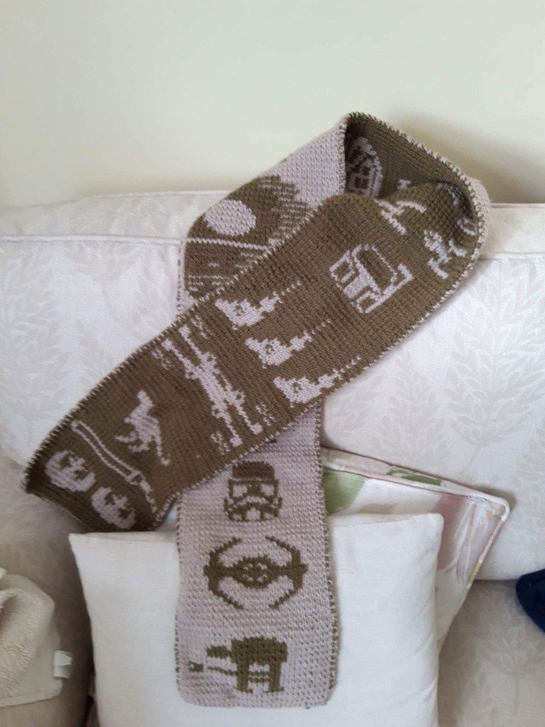 And I finished a Star Wars scarf for son no.1, just in time for Christmas.
